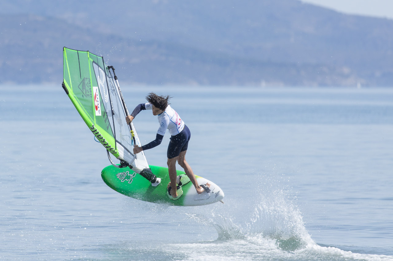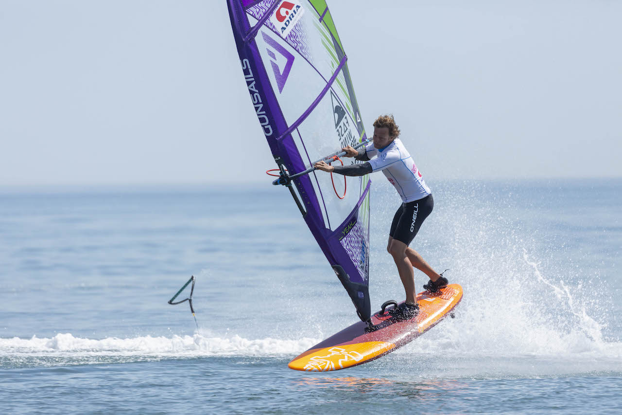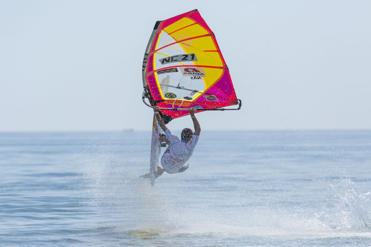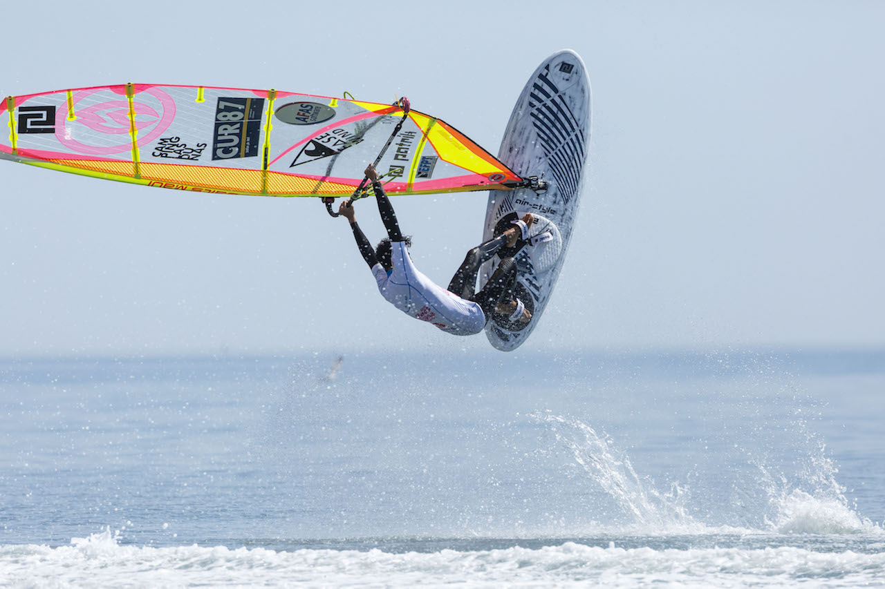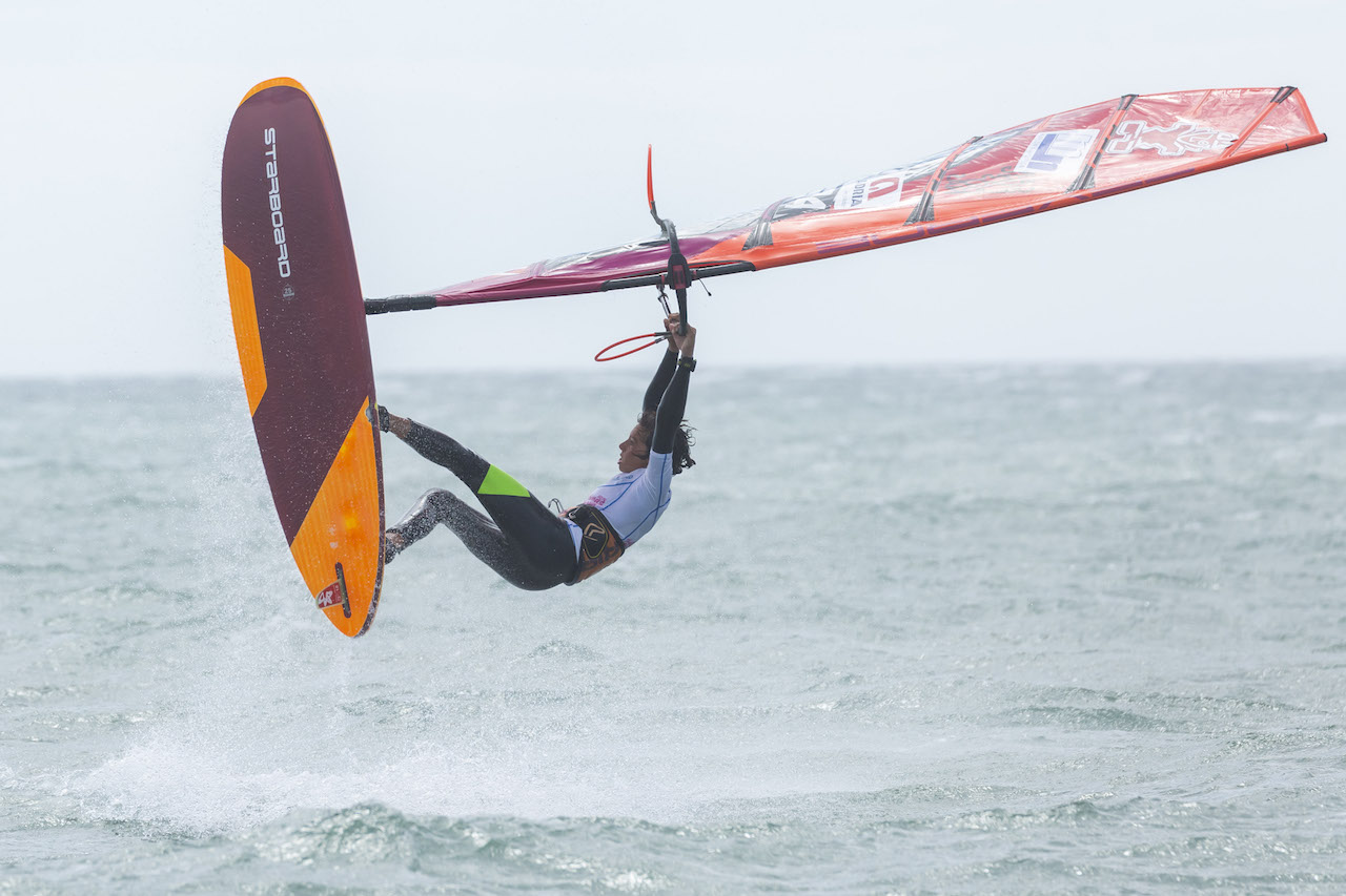 The ultimate day here at the EFPT Las Dunas Costa Brava has been all about the double elimination in howling winds with more to 40 knots at times. The riders started off on their 4.4s but had to rigg down to their 4.0s and below fairly soon. What seemed like a beautiful illusion at the start of the week, became reality today and provided the perfect playground for the remaining freestyle competition.