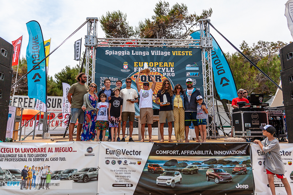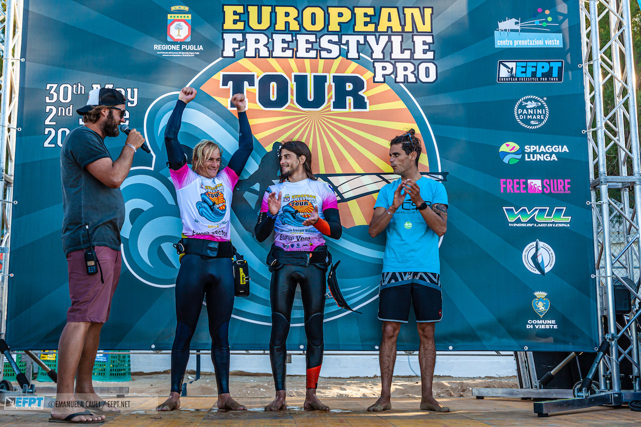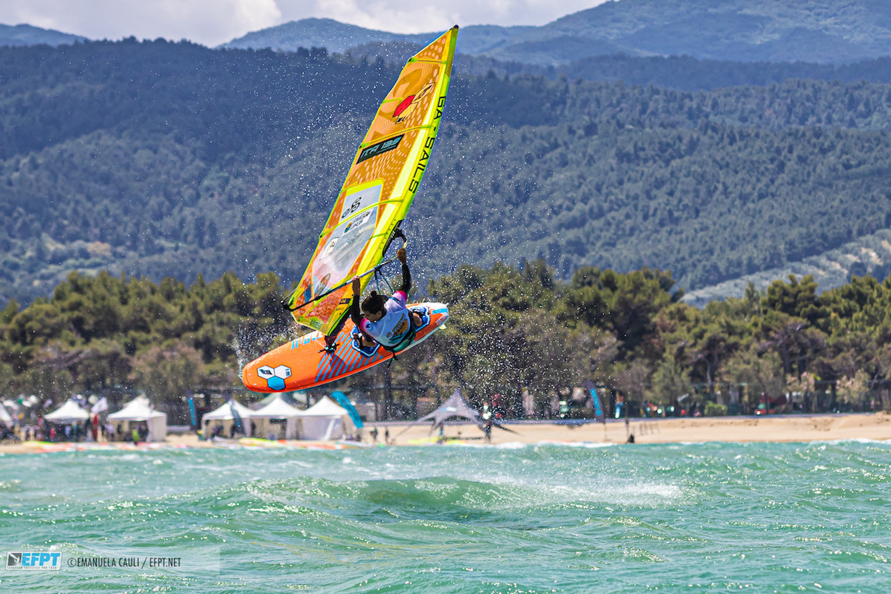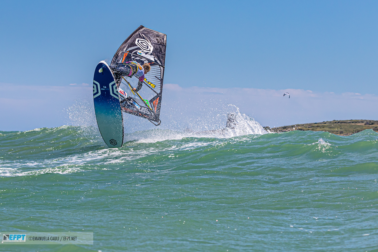 At the ultimate day of the EFPT Spiaggia Lunga Village, the wind remained light throughout the whole morning and  the competition had officially been called off by 12.00 midday, as there had been no improvement of the conditions. The result of the first double elimination therefor remains and makes Yentel Caers the event winner here in Italy.